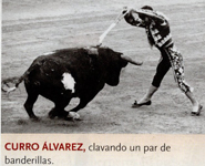 Matador de novillos y banderillero de toros nacido en Madrid el 4 de julio de 1944. Comenzó su andadura taurina durante la temporada de 1964 en funciones sin caballos. En 1967 comenzó a torear corridas picadas. También lo hizo en cosos de Portugal, Mozambique y Azores, en los que en alguna oportunidad alternó con matadores de toros. En Valencia tomó parte en la novillada celebrada el 15 de septiembre de tal año. Se retiró muy joven del toreo para volver en calidad de subalterno y figurar en las cuadrillas de El Estudiante en 1972, de Gabriel de la Casa en 1973 –resultó herido de alguna consideración el 27 de junio de Medina de Rioseco (Valladolid)– y de Dámaso Gómez a partir de 1975. Banderillero de grandes facultades y con unos deseos inmensos de complacer al público, ha ganado en buena lid numerosos trofeos, entre los que cabe destacar el prestigioso Mayte de 1976, destinado al mejor rehiletero de aquella feria de San Isidro de Madrid. El 1 de agosto siguiente alcanzó un bonito éxito en el coso madrileño de Las Ventas al alternar en el segundo tercio con su maestro de aquella tarde, Manuel Ortiz. No fue esta la única ocasión en que pareó brillantemente con el espada de turno con el total beneplácito de los espectadores. Durante la temporada de 1980 formó parte de una autodenominada <<Cuadrilla del Arte>>, en la que también figuraban el espada Pascual Mezquita, los picadores Alfonso Rodríguez, El Moro, y Raimundo Rodríguez y los banderilleros Francisco Honrubia y Elíseo Capilla. Este conjunto se presentó en la plaza madrileña de Las Ventas la tarde del 6 de abril, y tiene la mala fortuna Curro de resultar herido de cierta consideración en el muslo derecho por un astado de la divisa de García Romero Hermanos. Durante la siguiente temporada se crea otra cuadrilla similar, llamada también << del Arte>>, en la que se integran el espada Miguel Márquez y los subalternos de a pie Manuel y José Ortiz. Los éxitos de esta nueva agrupación se suceden, como el logrado en Málaga el 6 de agosto, con salida a hombros del coso de la Malagueta tanto del maestro como de sus tres banderilleros, hecho realmente resaltable. En ese año de 1981 le conceden a Curro el preciado trofeo donado por el Club de Vacaciones, que le sería entregado en Palma de Mallorca. El 25 de abril de 1982 interviene en una curiosa corrida concurso de banderilleros, que se celebra en Madrid, con toros del hierro de Puerto San Lorenzo, en la que se otorgaría un premio de 100.000 pesetas al peón que colocara el mejor par de garapullos, que el correspondiente jurado decidió fuera para Manuel Ortiz, pese a que Curro Álvarez tuvo una notable actuación. Estos últimos tiempos se le ha visto actuar a las órdenes de Roberto Domínguez, Antonio Rubio, Macandro, Jorge Gutiérrez, Paco Alcalde, Jorge Manrique, Morenito de Maracay, Rafael de Paula, José Luis Palomar, César Rincón… Toreó suelto pero respetando a Miguel Rodríguez, Juan Mora y Niño de la Taurina desde 1995 hasta 1999, año de su retirada. Ese año, en el que torea principalmente con Miguel Rodríguez, se llevó premios a la brega con un toro de Adolfo Martín en la feria de San Fermín. Toreó su última corrida el 12 de octubre de 1999 en Navalcarnero, a las órdenes de Miguel Rodríguez, que alternaba con El Fundi y Luis Miguel Encabo. Esa tarde fue invitado a banderillear por los tres matadores y fue sacado a hombros tras cortarle la coleta su matador. Se despidió del toreó con 55 años, pleno de facultades físicas y artísticas, pues se dedicó por entero al ejercicio de su profesión. Su entrega, eficacia y buen hacer son los rasgos principales de este torero de plata, que compaginó su profesión con la de apoderado en los últimos años.
