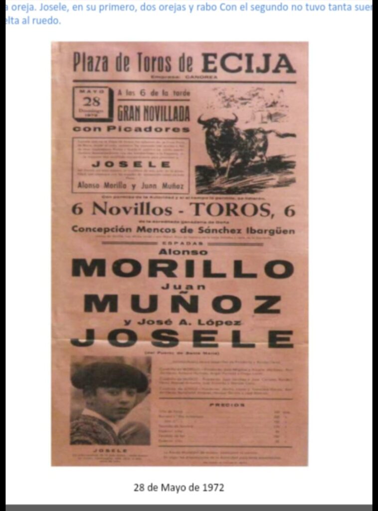Buenos días. Antes de todos darle las gracias por la publicación. Comunicarle que mi debut con picadores .fue en Granada domingo de resurrección año 1972. Posteriormente ese mismo año el día 9 junio 1972 .mu presentación en la Real maestranza de Sevilla. Y acontinuacion alterne en dicha plaza hasta 15 tardes .pudiendo aporta los carteles anunciados. Con los diestro jose antonio campuzano. Ramón soto vargas. Antonio chacon graviel puertas. Francisco nuñez currillo . Manolo de los reyes .y muchos más. Pudiendo aportarles fechas y carteles